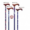 Bastón de aluminio muy ligero y resistente. De altura graduable 77 a 100 cm con ajuste silenciador que impide el molesto ruido que hacen muchos bastones durante la marcha. Disponible en 10 diferentes diseños y colores. Sistema antirruido.