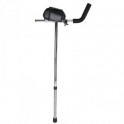 Fabricado en aluminio y acero, de altura regulable. El puño se regula en longitud y en inclinación lateral. El antebrazo descansa sobre una almohadilla acolchada de poliuretano y se sujeta con una banda de skay con velcro.
