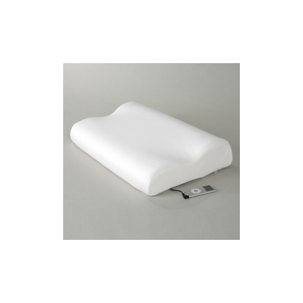 Fabricada en espuma viscoelástica con dos inapreciables y pequeños altavoces incorporados durante el proceso de fabricación.