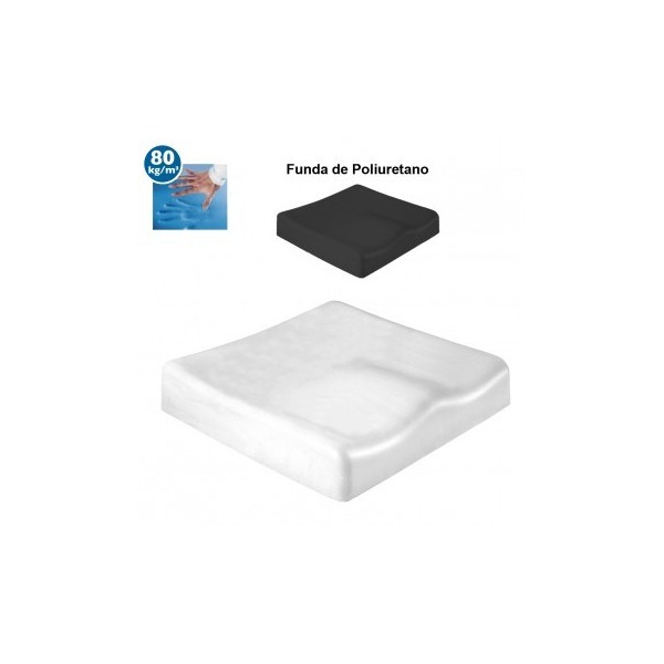 Cojín viscoelástico anatómico que alivia las presiones, actuando para prevenir la aparición de escaras en las personas que permanecen sentadas durante largos periodos de tiempo a la vez que, gracias a su forma anatómica, proporciona una gran estabilidad y ayuda a mantener una buena postura. Funda de PU (poliuretano)transpirable e impermeable a la vez.