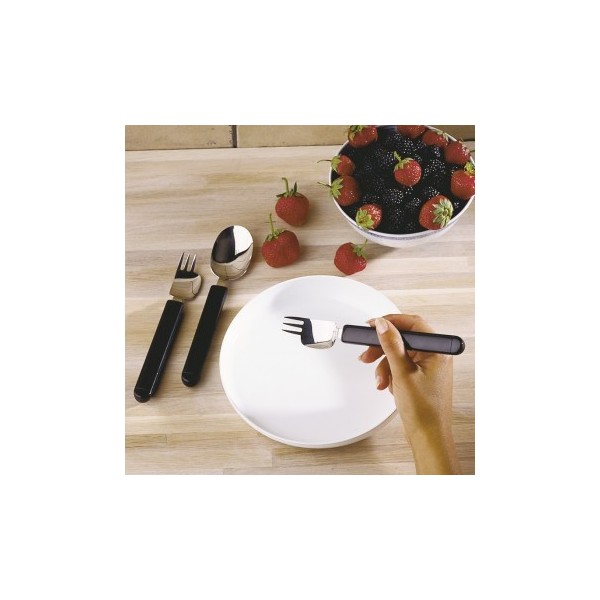 Diseñados en Suecia para personas que solo pueden usar una mano. El tenedor / cuchillo está disponible en dos versiones, para diestros y para zurdos. El mango está especialmente diseñado para ser fácil de agarrar con el pulgar y el índice.