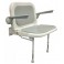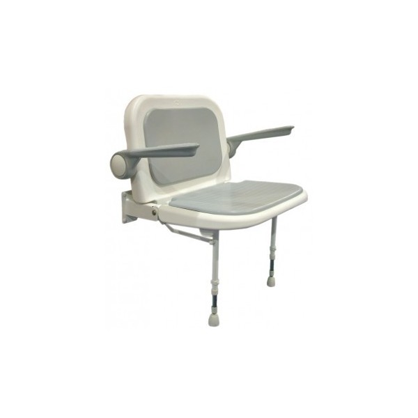 Asiento abatible de gran calidad, en acero inoxidable con cojín y respaldo acolchados. Incorpora apoyabrazos independientes para mayor soporte al sentarse y levantarse. El ángulo de caída de los brazos puede ajustarse según preferencias individaules (+/-5º).