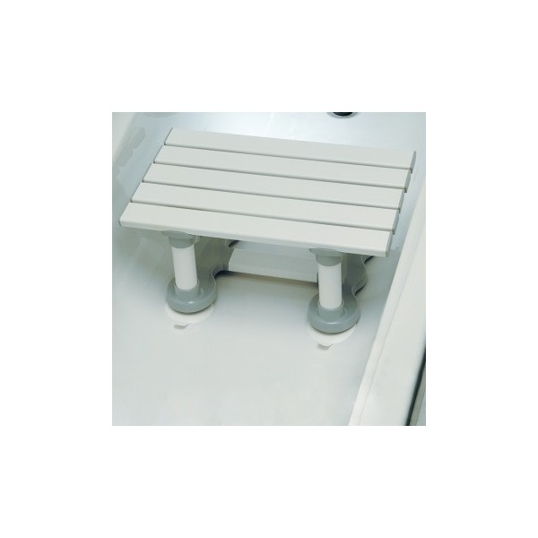 Fabricada en plástico reforzado y con materiales inoxidables. Es cómoda y tiene un buen drenaje para evacuar el agua. Sus cuatro ventosas la aseguran firmemente a la bañera.