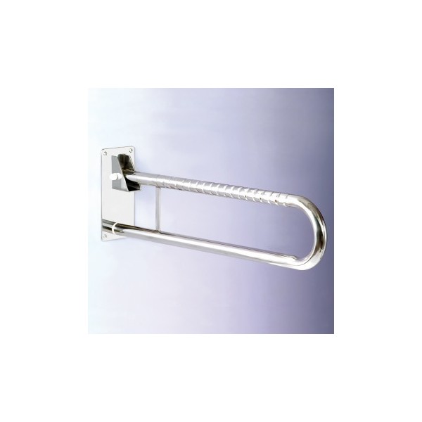 De acero inoxidable, va montada sobre la pared. Es abatible y cuando está fuera de uso, queda fijada en posición vertical. Tubo de 32 mm de diámetro. Placa de pared de 10 x 23 cm, fijada con 4 tornillos.