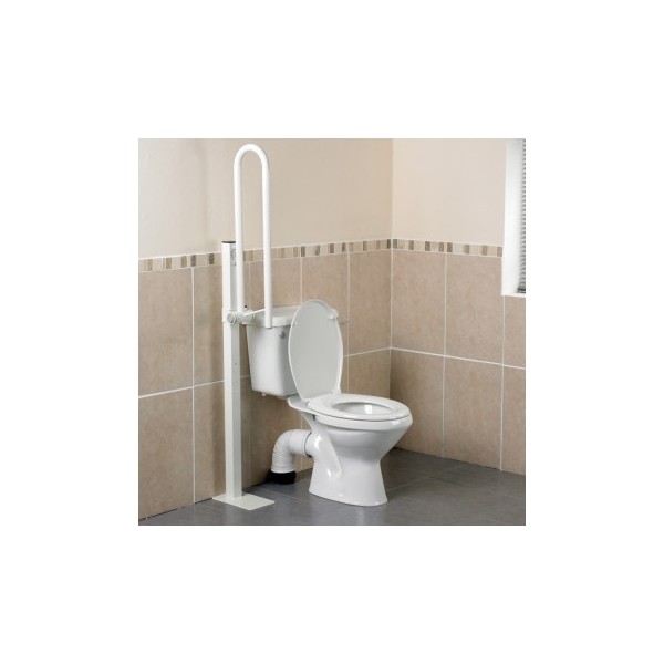 La solución perfecta cuando no se quieren atornillar barras o asideras a la pared o cuando la pared no ofrece las garantías y seguridad suficientes,por ejemplo en el caso del pladur. Queda fijada firmemente al suelo y se puede regular en altura sin necesidad de herramientas (solo con un pomo) para adaptarse a cualquier persona,sin que su estatura sea un condicionante.Placa en el suelo: 25 x 15 cm.