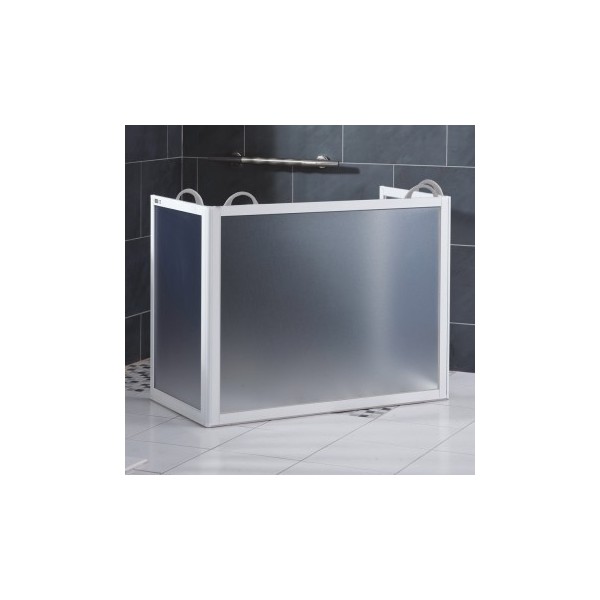 Para facilitar la tarea del cuidador esta mampara se oliega y es fácil de llevar. Desplegada donde y cuando se precisa impide que el cuidador se salpique de agua durante la ducha.