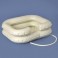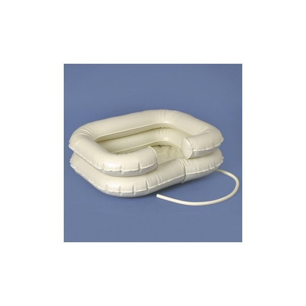 De resistente plástico vinilo, con dos aros hinchables y una abertura para el cuello. Es muy práctico para lavar a una persona encamada. Se puede inflar fácilmente sin necesidad de bomba. Incorpora un tubo de drenaje para evacuar el agua.