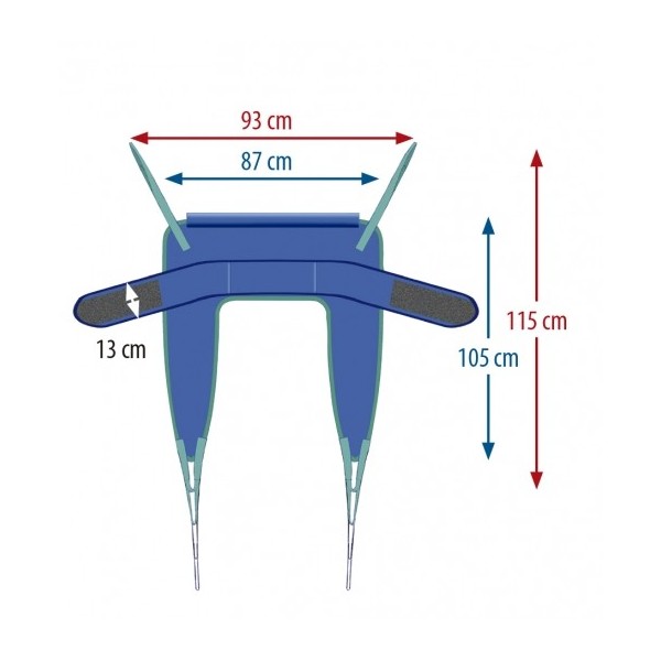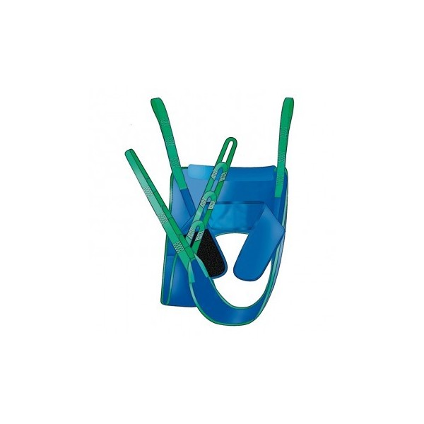 Nuevo diseño de arnés de ajuste rápido. Un arnés seguro y muy fácil de poner. con cinturón frontal de ajuste rápido con velcro. Este es el arnés preferido en las instituciones, especialmente para usarlo en el WC, ya que permite que el paciente se vista y desvista al subir o bajarle al aseo. Tejido de fácil secado.