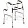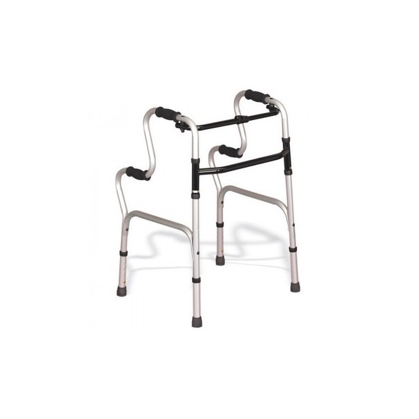 Además de caminador, sirve como ayuda para incorporarse desde la posición de sentado. Fabricado en aluminio. Plegable.
