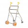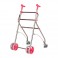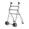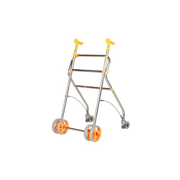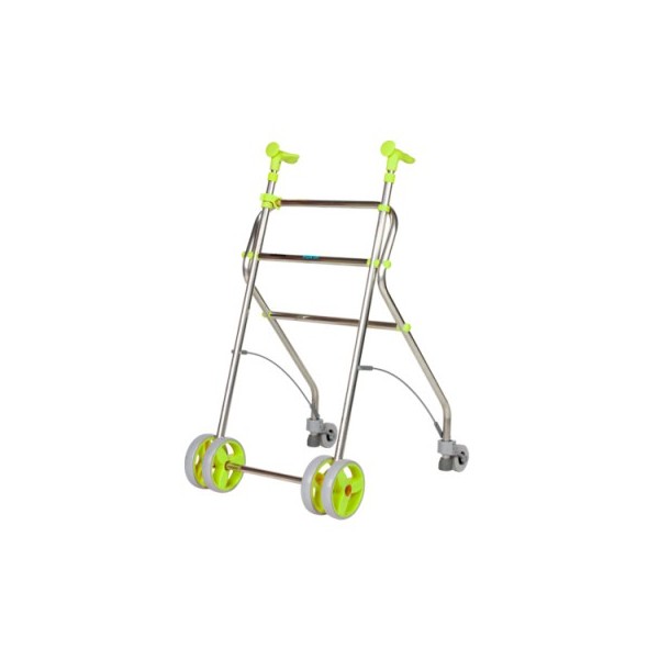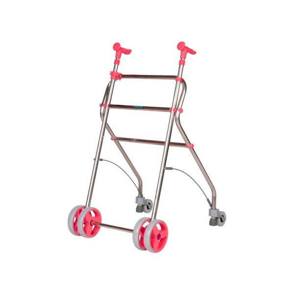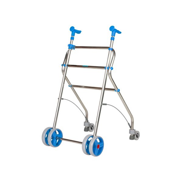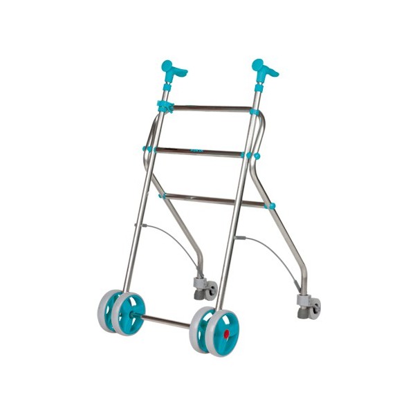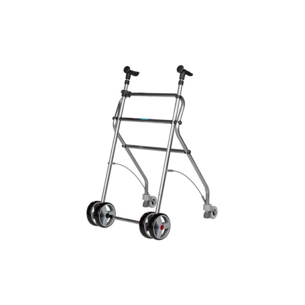 Ruedas delanteras dobles fijas y ruedas traseras con freno por presión.