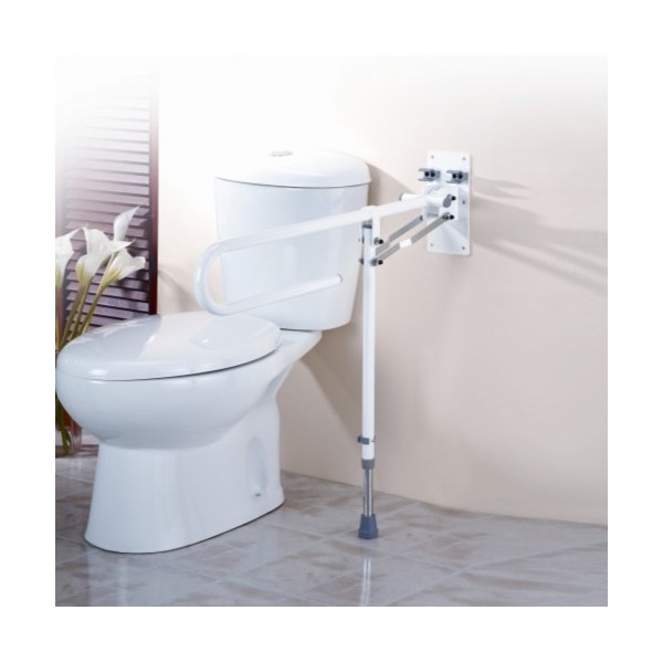 Proporciona seguridad en la ducha y baño. La barra abatible se puede bajar o subir para dejar paso cuando no es necesaria. Placa a la pared fijada con 6 tornillos. Dos pinzas de sujección. Extensible en altura para adaptarla a cualquier necesidad. Color blanco.