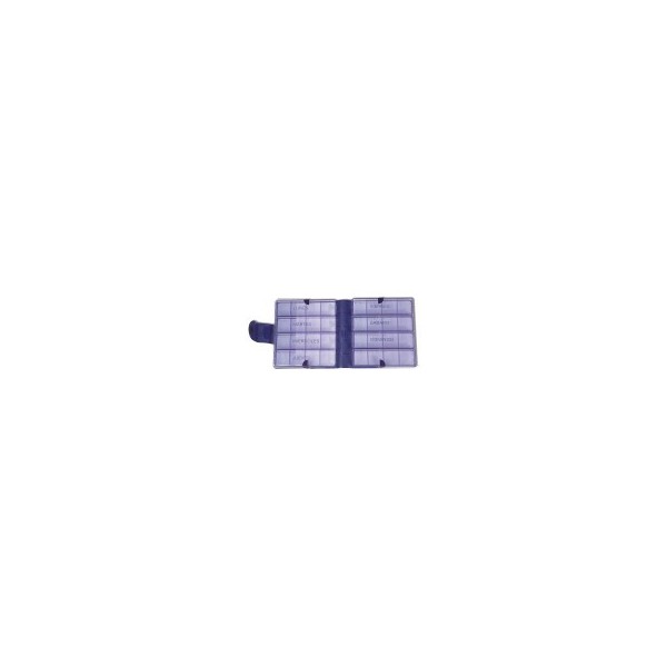 Especial para pacientes con dosis de medicación muy elevada, con problemas de movilidad o de vista. Ocho recipientes, uno para cada día de la semana y uno de repuesto. Base satinada para anotaciones. Estuche plástico con cierre de velcro.