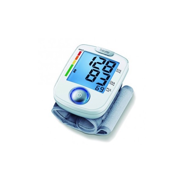 Tensiómetro automático muy fácil de usar y con gran pantalla de fácil lectura, iluminada en azul. Tamaño de la muñeca 14 - 19,5 cm. Con sistema de detección de arritmias. Indicación de control de estado de la batería. Incluye pilas y bolsa.